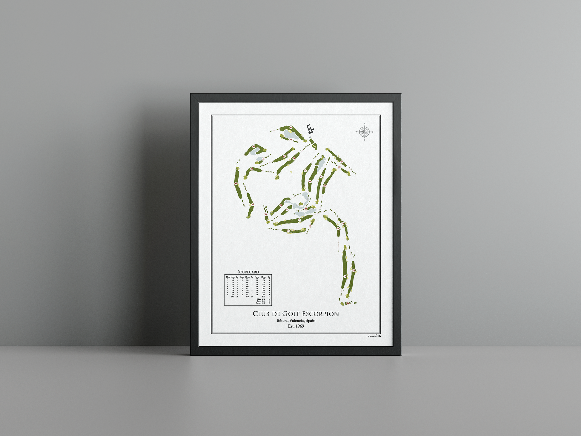 Our Club de Golf Escorpión Course Print captures the clean flow of the layout and the character of golf near Valencia. A perfect piece for anyone who has played Escorpión, loves Spanish golf trips, or wants a timeless reminder of a standout round in the Valencia region.