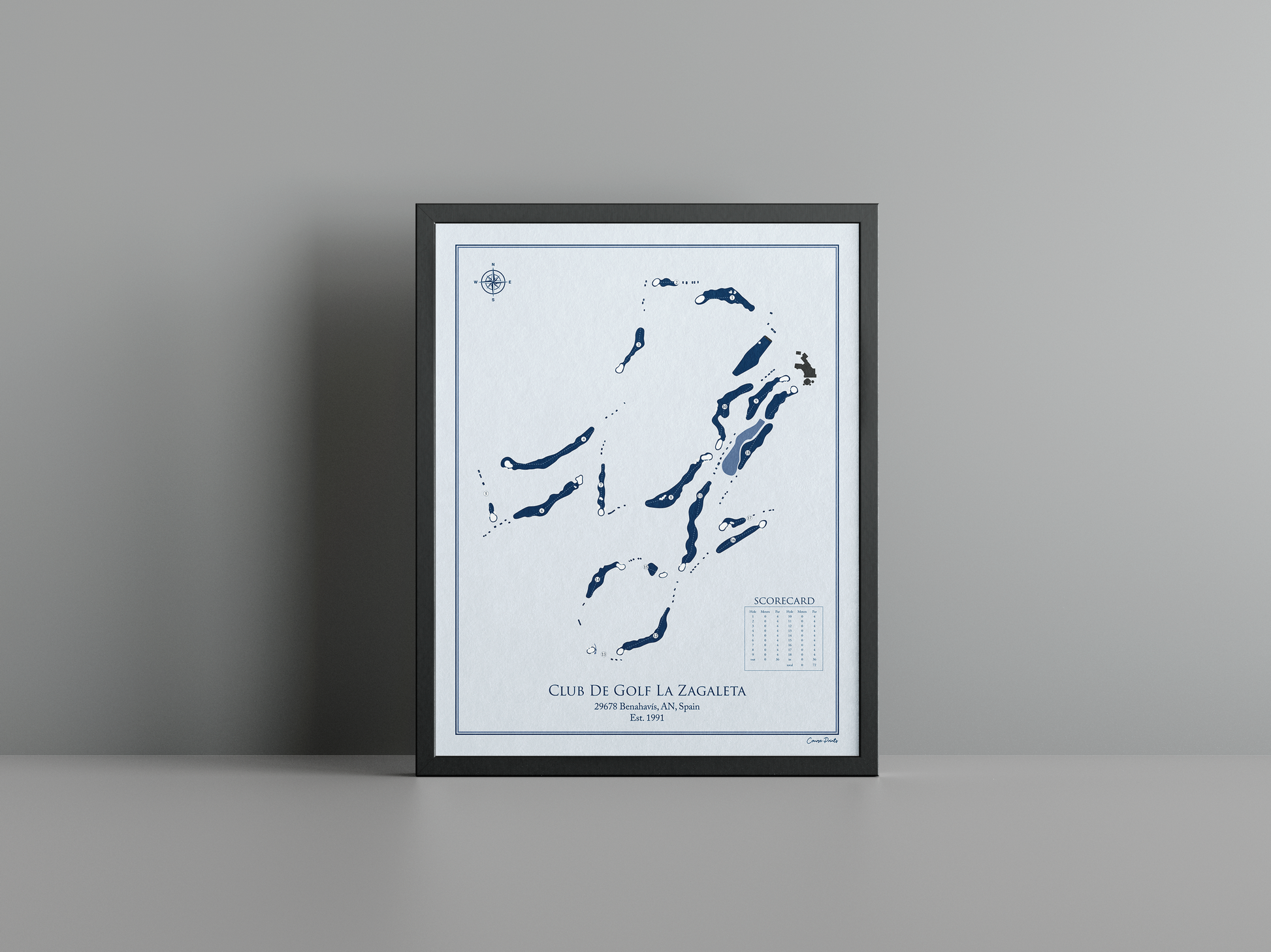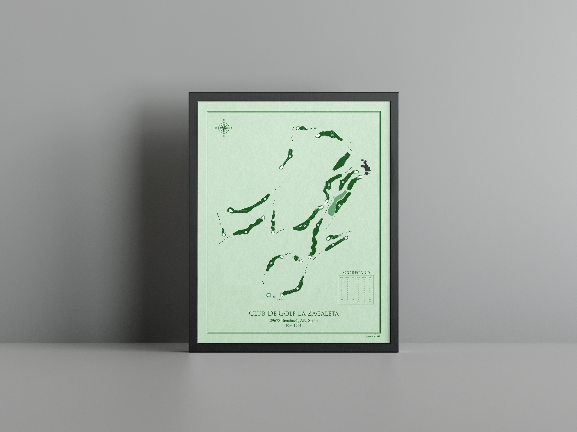 Discover the serene elegance of the Mediterranean with a premium Course Print of La Zagaleta Country Club - Old Course. Nestled in the picturesque hills of Benahavís, Spain, this stunning course opened its doors in 1991 and has since become a haven for golf enthusiasts. With its undulating terrain shaped by natural contours, La Zagaleta offers breathtaking views that stretch across the lush valleys and sparkling coastlines, creating an enchanting backdrop for a memorable round of golf.