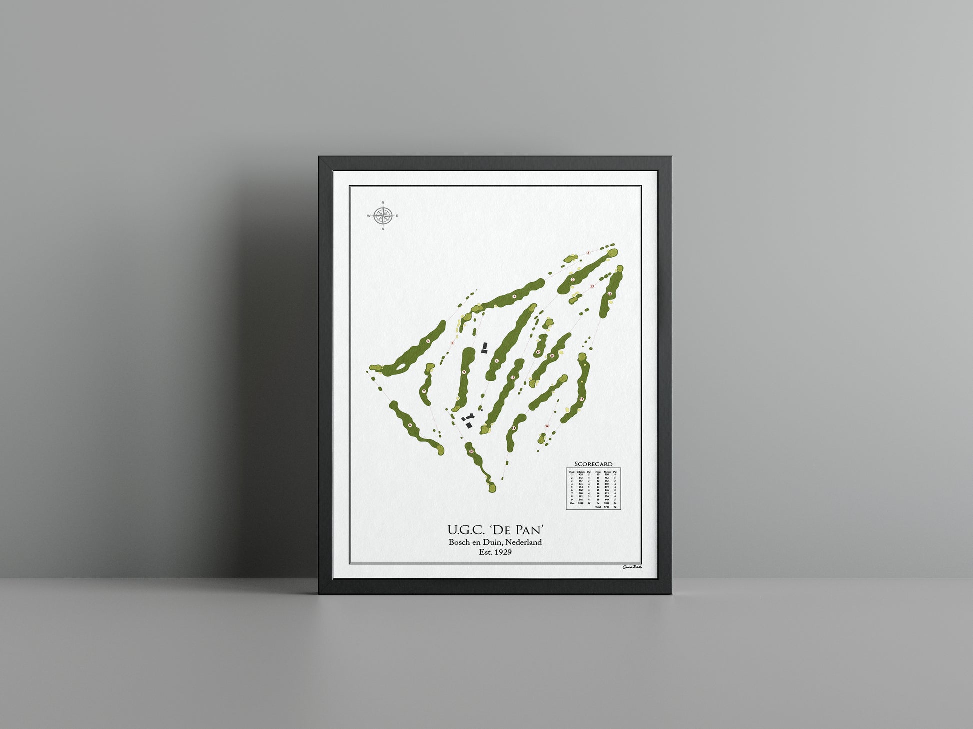 Our premium-quality Course Print elegantly captures the layout and character of De Pan — a must-have for those who have walked its fairways, or who dream of playing this Dutch golfing treasure.